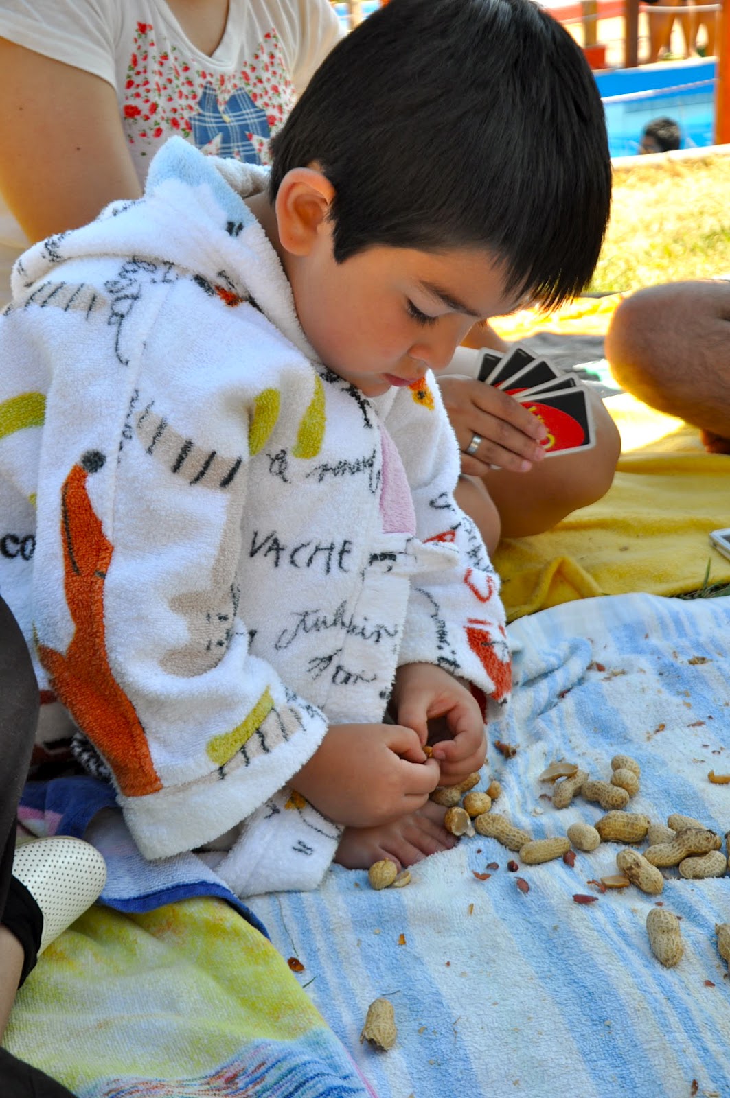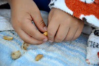 Casi 1 hora mi hijo estuvo inmerso en pelar esas delicias ... tal fué su interés, que se mantuvo concentrado sin poner atención en lo que sucedía a su alrededor, hasta que legó el Momento de comérselos. (y yo pude disfrutar de ese Brillo en sus pequeños Ojos de estar comiendo algo que logró por si solo).
