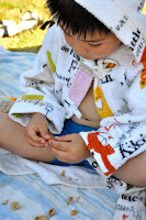 Casi 1 hora mi hijo estuvo inmerso en pelar esas delicias ... tal fué su interés, que se mantuvo concentrado sin poner atención en lo que sucedía a su alrededor, hasta que legó el Momento de comérselos. (y yo pude disfrutar de ese Brillo en sus pequeños Ojos de estar comiendo algo que logró por si solo).